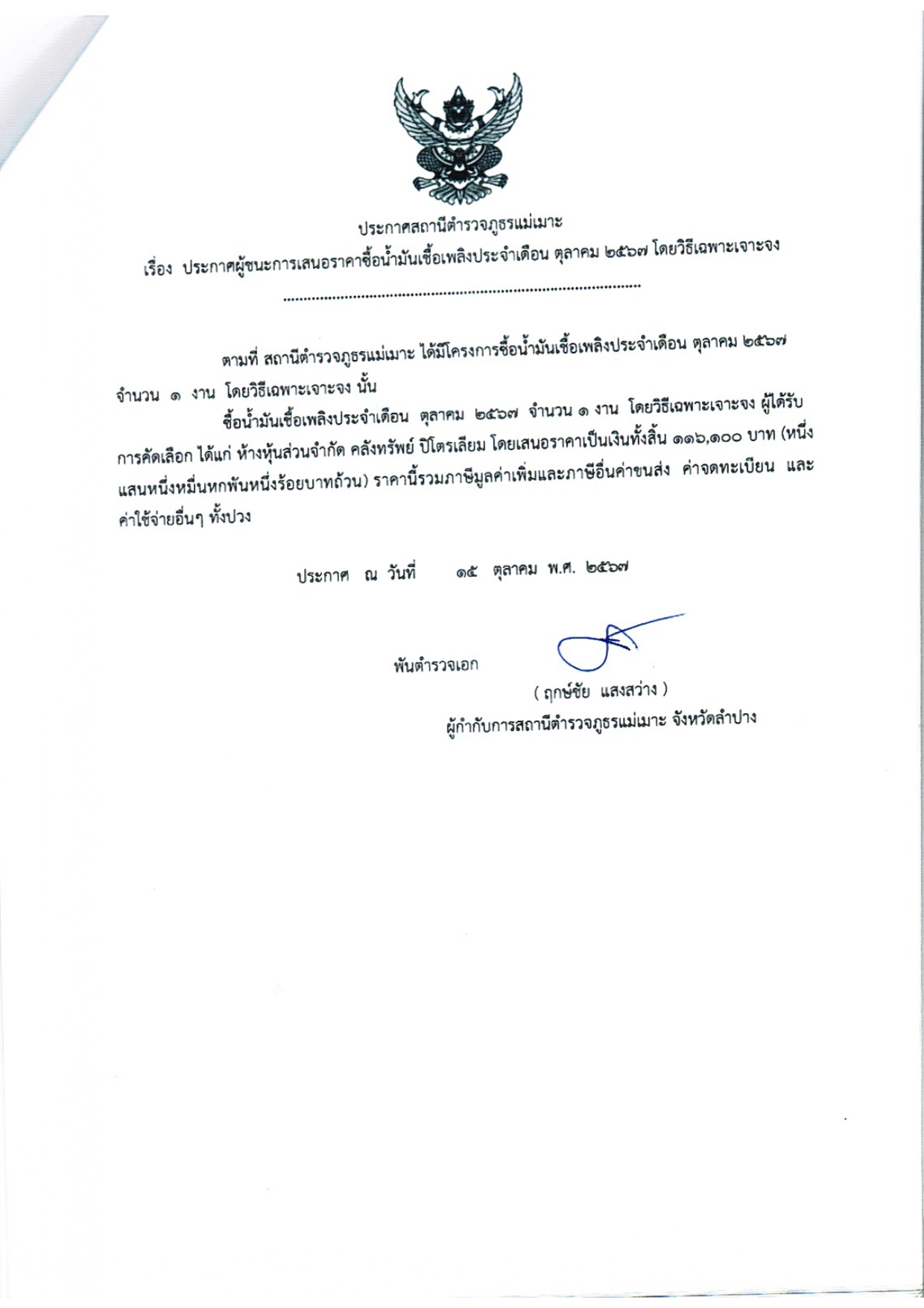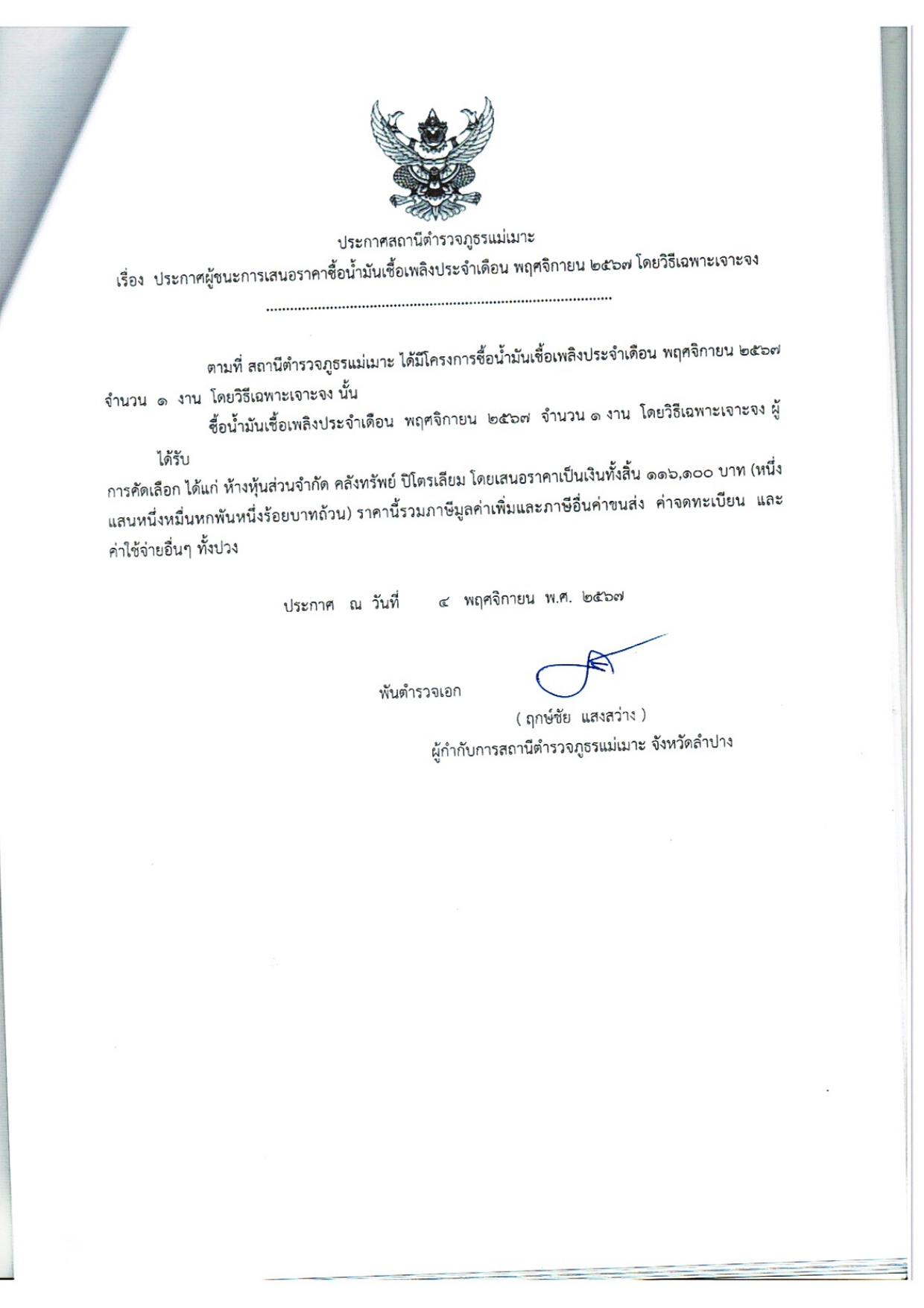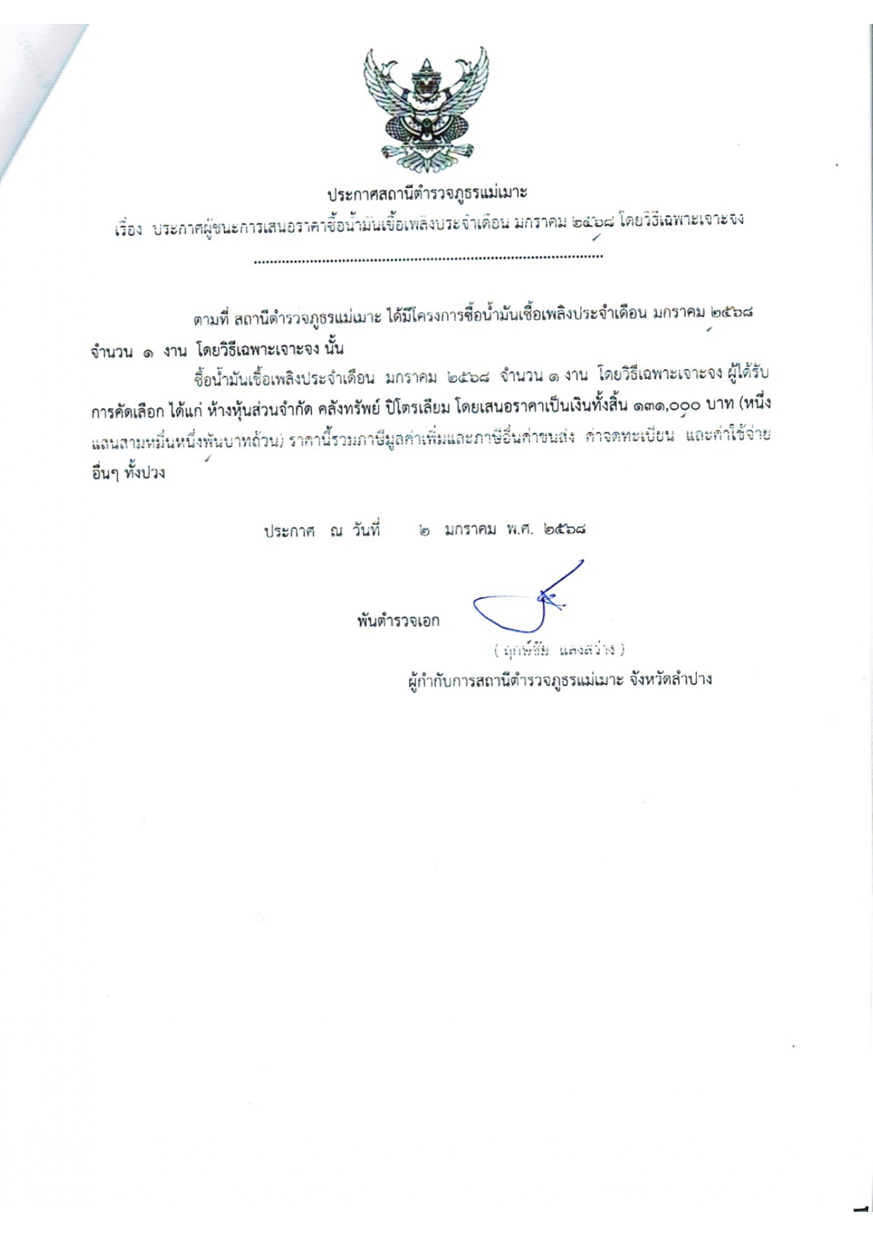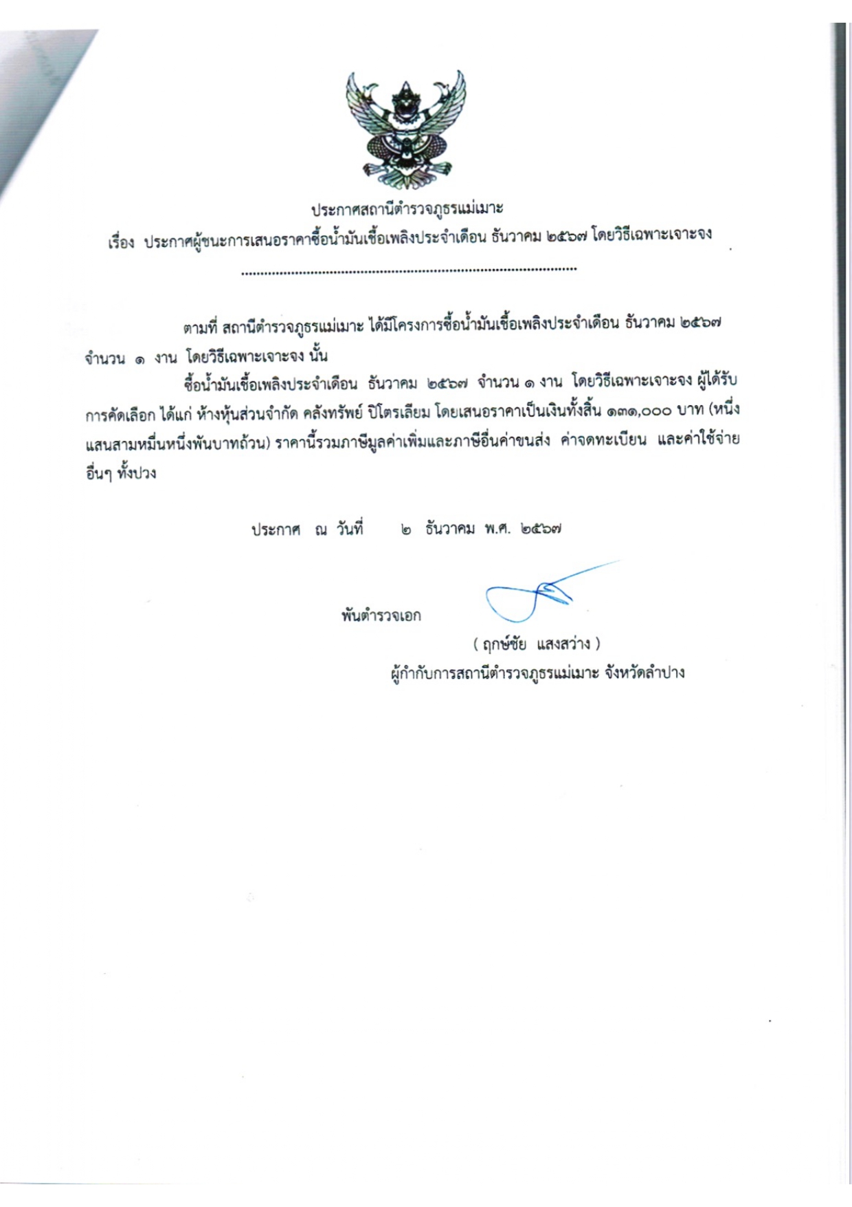 และได้ร่วมลงนามบันทึกข้อตกลง (MOU) บ้านหัวฝายหล่ายทุ่ง ม.8 ต.บ้านดง อ.แม่เมาะ จว.ลำปาง และบ้านหัวฝาย