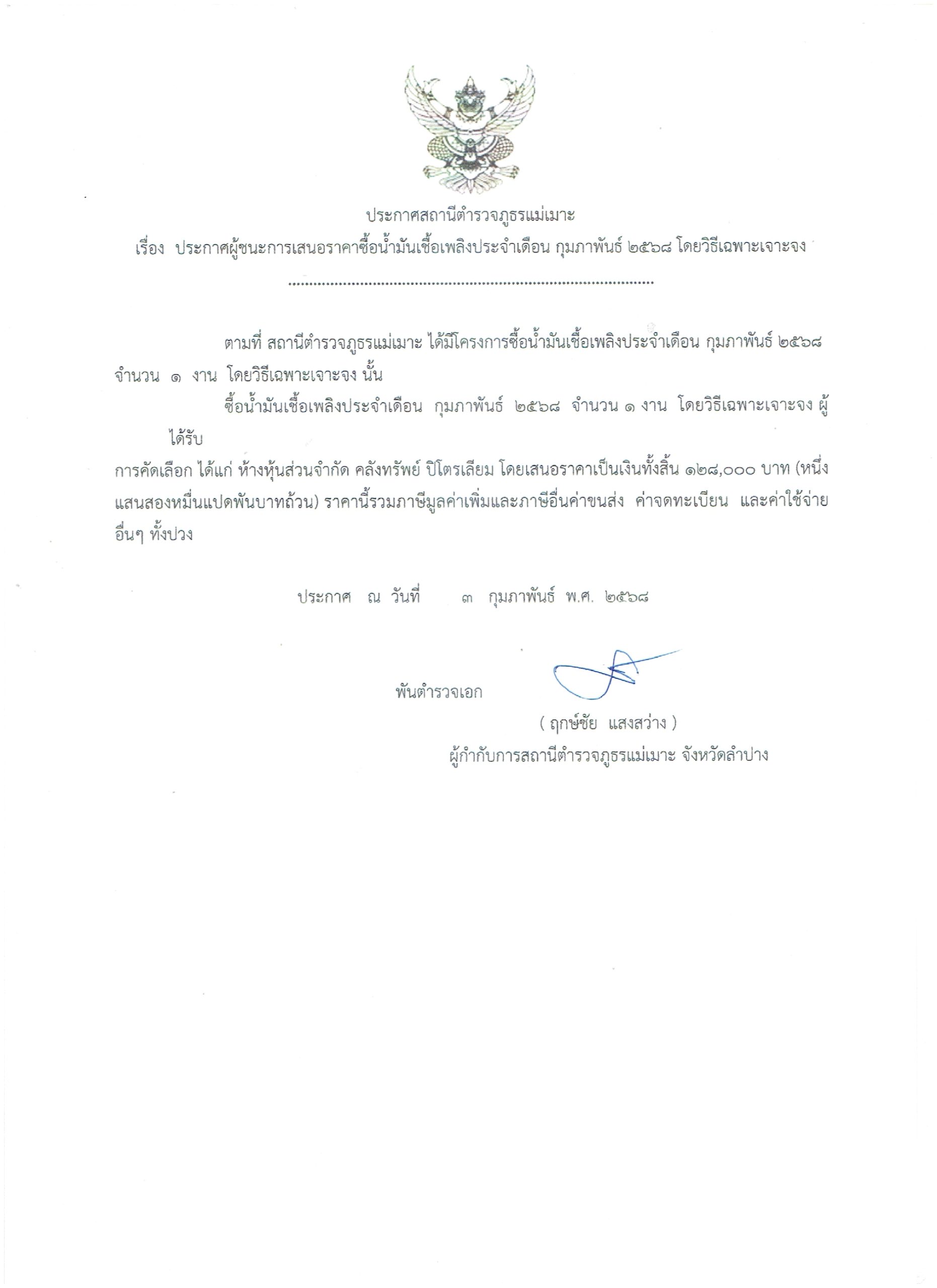 การจัดซื้อจัดจ้างประจำเดือนกุมภาพันธ์ 2568