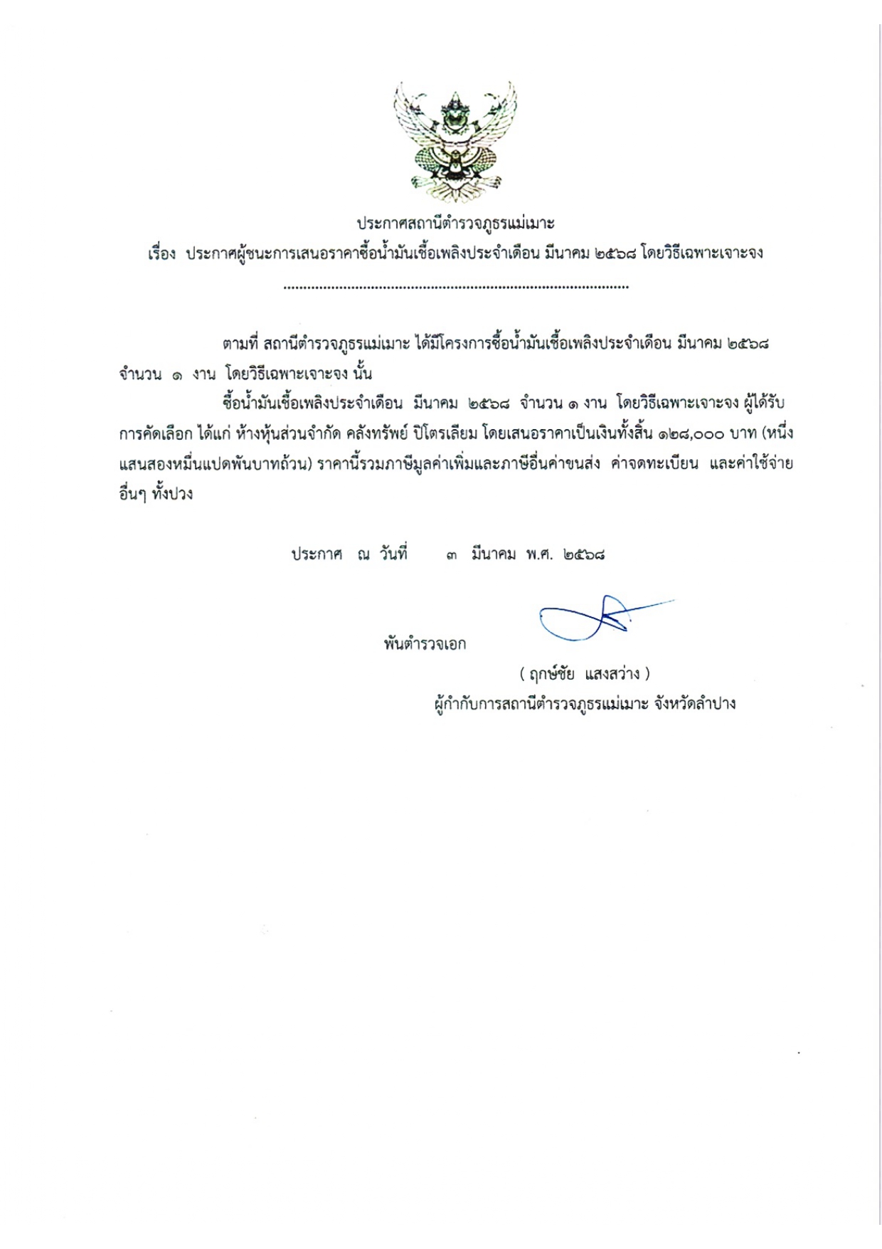 การจัดซื้อจัดจ้างประจำเดือนมีนาคม 2568