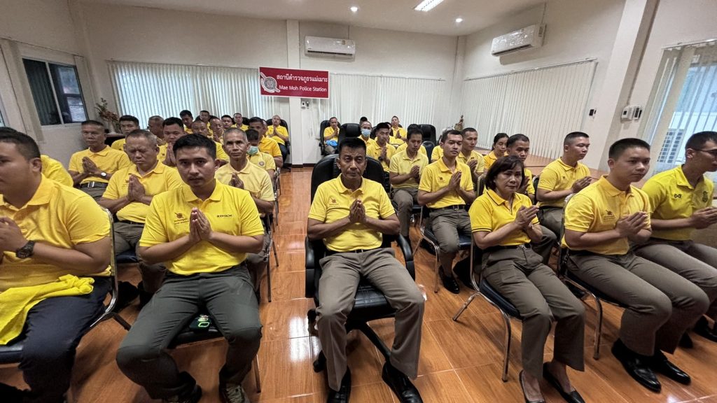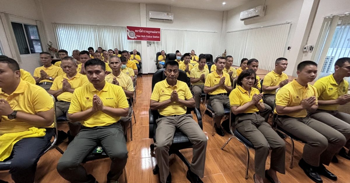 วันนี้ 26 ก.ค. 67 เวลา 14.00 น. พ.ต.อ.ฤกษ์ชัย แสงสว่าง ผกก.สภ.แม่เมาะ นำข้าราชการตำรวจ สภ.แม่เมาะ กระทำพิธีเจริญพระพุทธมนต์และเจริญจิตตภาวนา ถวายเป็นพระราชกุศล เนื่องในโอกาสวันเฉลิมพระชนมพรรษา พระบาทสมเด็จพระเจ้าอยู่หัว 28 กรกฎาคม 2567 ณ ห้องประชุม สภ.แม่เมาะ 26 กรกฎาคม 2567 โดย maemoh.lampang.police.go.th / ข่าวประชาสัมพันธ์,ข่าวกิจกรรม,ข่าวประชาสัมพันธ์,ข่าวภารกิจผู้บังคับบัญชา FacebookFacebookXXLINELine