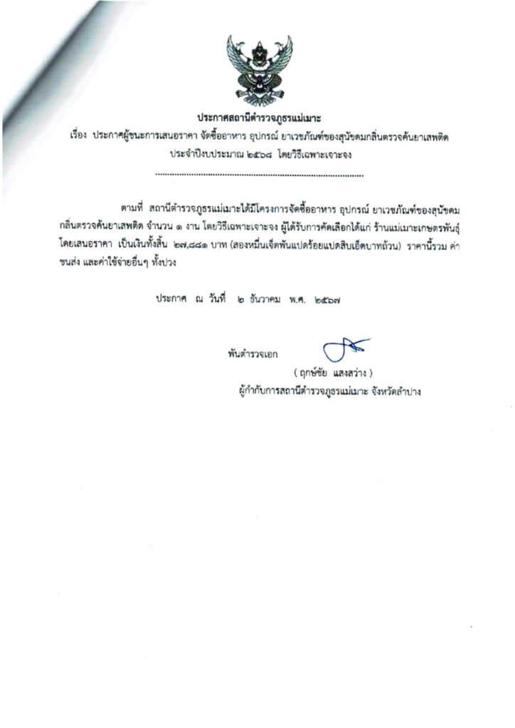 การจัดซื้อจัดจ้างประจำเดือนธันวาคม 2567 12 มีนาคม 2568 โดย maemoh.lampang.police.go.th / ข่าวจัดซื้อจัดจ้าง,ข่าวจัดซื้อจัดจ้าง,งานการเงินและพัสดุ FacebookFacebookXXLINELine